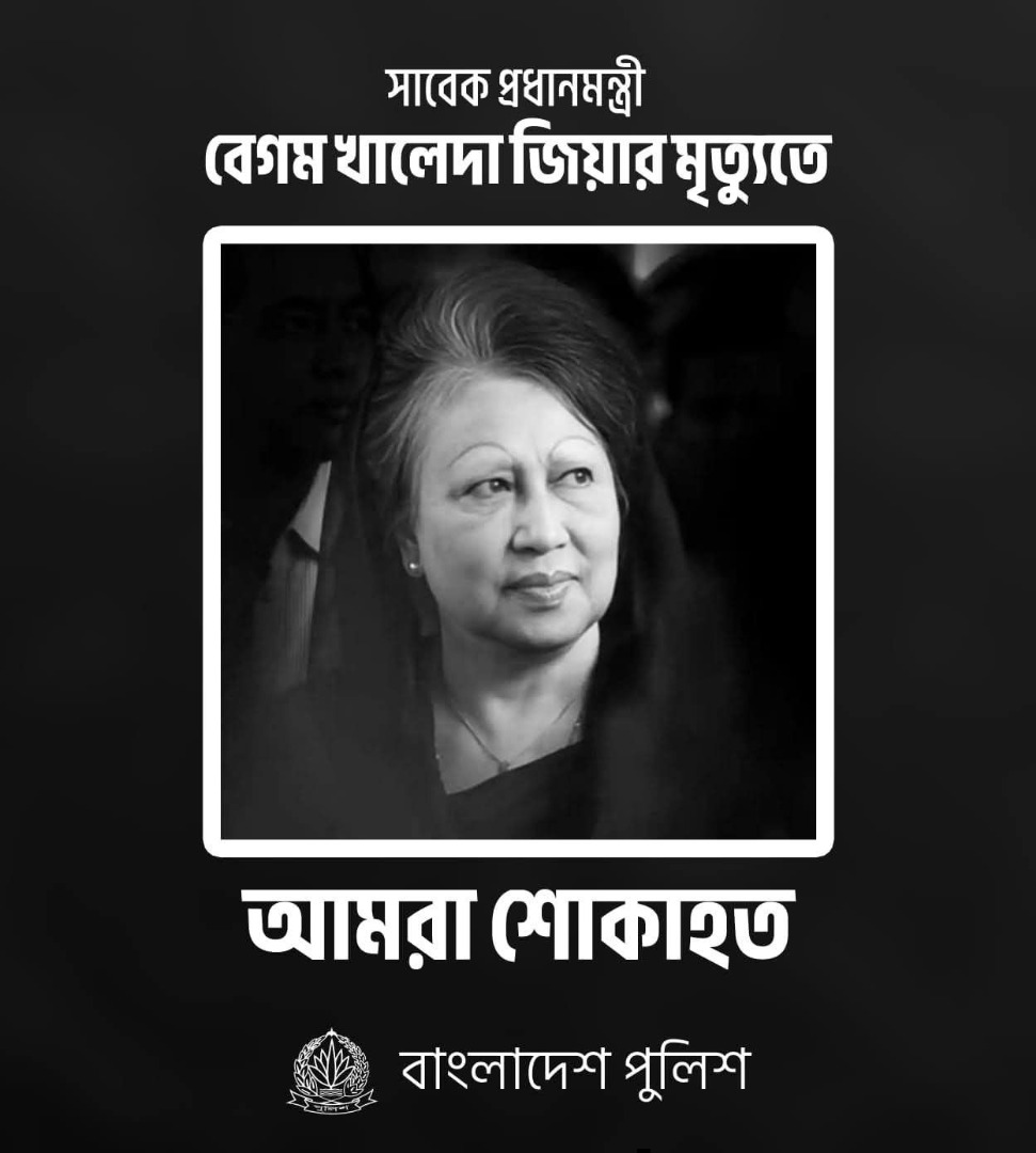 সাবেক প্রধানমন্ত্রী বেগম খালেদা জিয়ার মৃত্যুতে আমরা শোকাহত